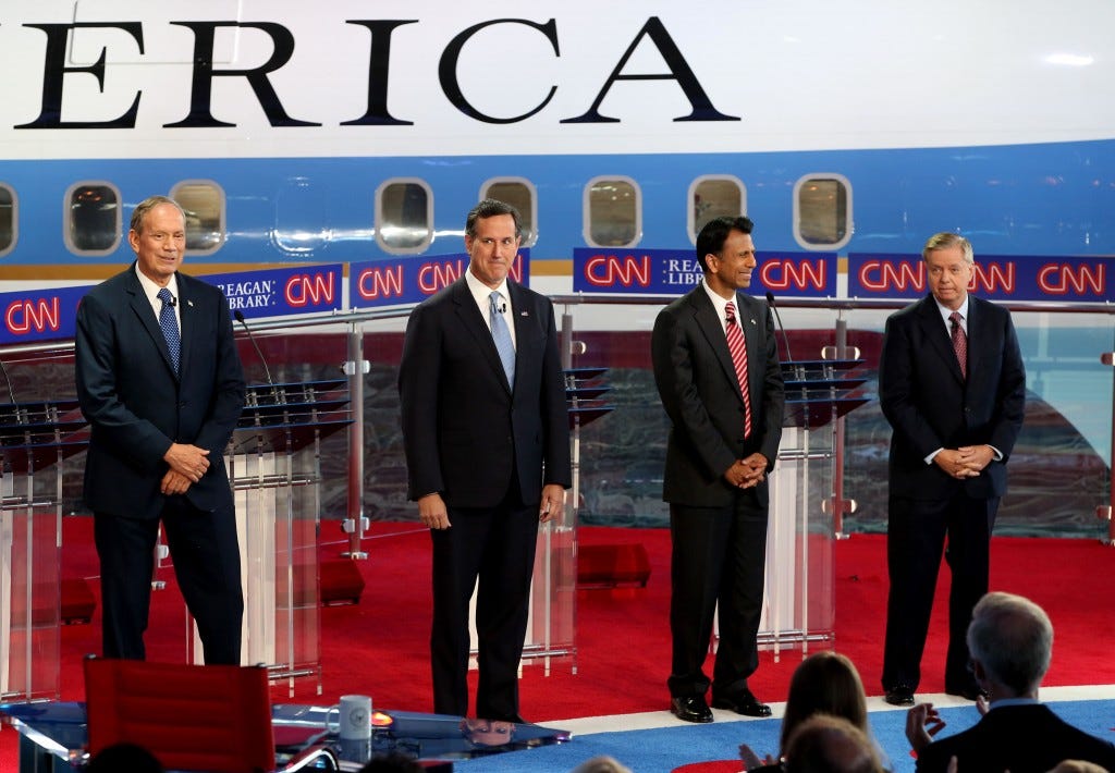 There weren’t the only Republican candidates. They had an undercard debate too, that same night. There were so many candidates, they had to have a kids’ table. I don’t have many regrets in life, but I really wish I had this newsletter when there was the undercard Republican debate. It was one of the most pathetic events in American political history.